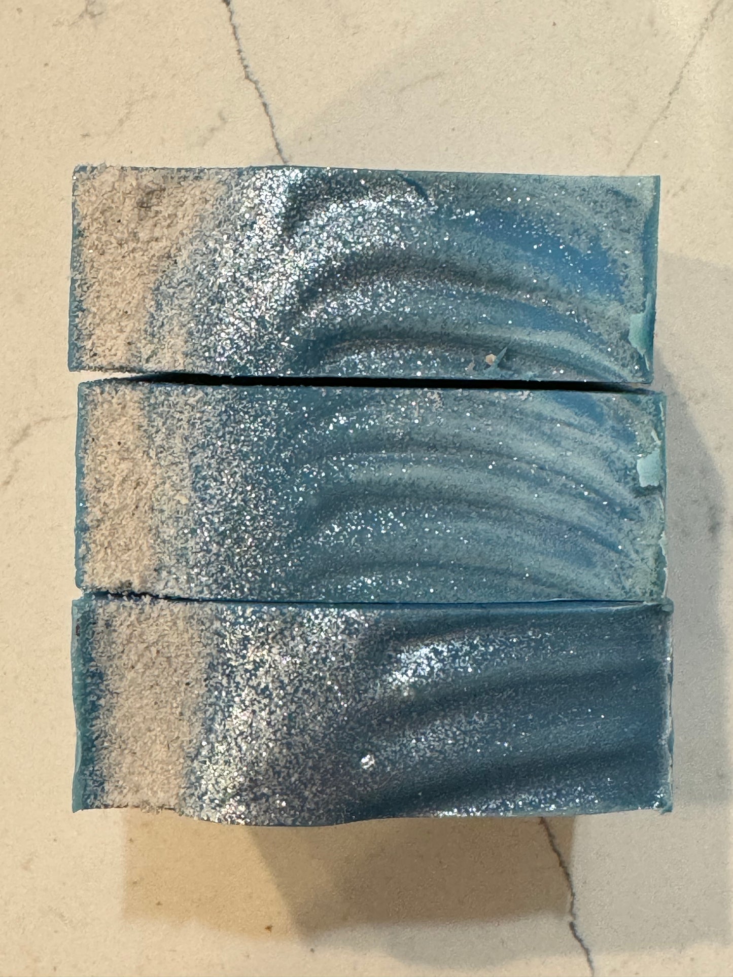 Our soaps are all handmade and hand cut. They weigh anywhere from 4-5 ounces but will vary in color, size and pattern. We make our soaps in small batches of 15-20 soaps at a time so they will vary slightly by batch.